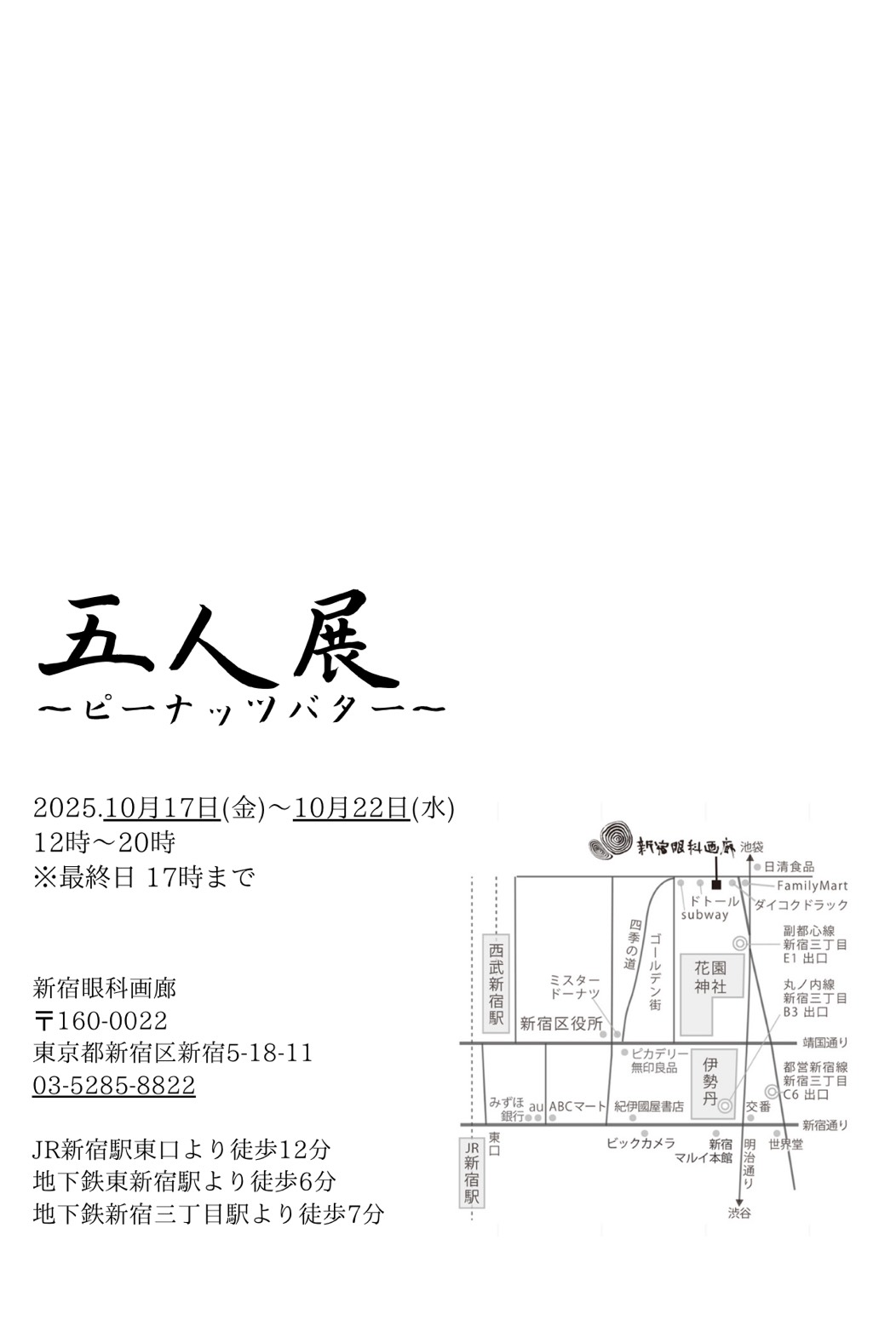 2025年10月21日 展示情報 10/17-10/22芸術学科生によるグループ展のお知らせ 芸術学科生5名によるグループ展「5人展」が、新宿眼科画廊にて開催中です。 ぜひお運びください。 Prev 一覧に戻る カテゴリー 展示情報 イベント 授業風景 日常風景 その他 学生トピックス 未分類 学科トピックス 卒業生の活躍 学生作品ギャラリー TOPイメージ ゼミ風景